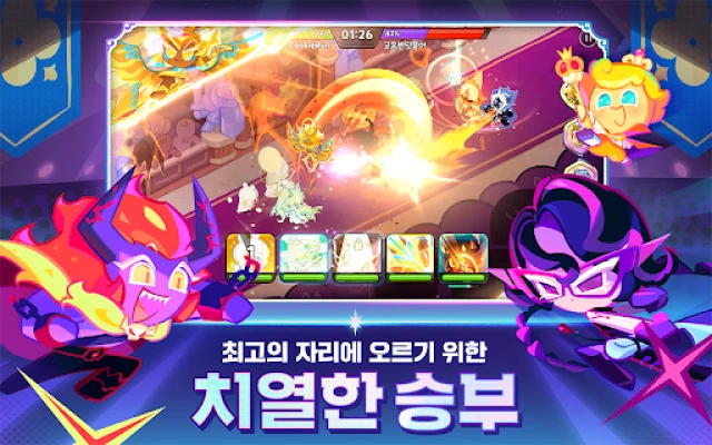 쿠키런: 킹덤에서는 전략적인 깊이가 돋보이는 박진감 넘치는 전투가 기다립니다. 수많은 보물과 토핑 조합을 통해 최강의 쿠키 덱을 구성하고, 아레나, 수호의 성전, 길드 토벌전 등 다채로운 전투 모드에서 끊임없이 새로운 전략을 탐구하며 승리를 쟁취하세요. 또한, 길드원들과 함께 길드의 명예를 드높이는 여정에 참여할 수 있습니다. 길드 영토를 확장하고 희귀한 유물을 수집하여 더욱 강력한 길드를 만들어 데브시스터즈(주)가 선사하는 이 세계의 모든 영광을 함께 누려보세요.