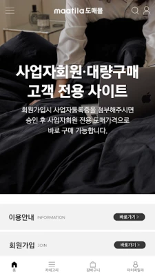 maatila 도매몰은 침구류 전문 도매몰로, 다양한 디자인과 기능의 침구 제품을 합리적인 도매 가격으로 제공합니다. 사업자 및 소매업체에게 최적화된 편리한 모바일 쇼핑 환경을 통해 고품질 침구를 손쉽게 대량으로 구매할 수 있는 기회를 드립니다.