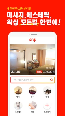 마통은 마사지, 에스테틱, 왁싱 등 다양한 뷰티 서비스를 최저가로 만나볼 수 있는 앱입니다. 전국 엄선된 샵들을 한눈에 비교하고 편리하게 예약하세요. 합리적인 가격으로 자신에게 맞는 힐링과 아름다움을 찾고 일상에 활력을 더해줄 마통을 경험해보세요.