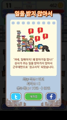 내꿈은 정규직은 돈도 연줄도 없는 인턴이 사장까지 승진하는 서바이벌 게임입니다. 취업과 직장 생활에 지친 이 시대의 미생들을 위한 '내꿈은 정규직' 게임! 현실에서 못 이룬 꿈을 내꿈은 정규직에서 지금 이뤄보세요. 쉽지 않겠지만 도전할 가치는 충분합니다.