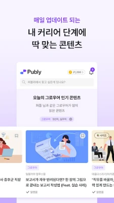 퍼블리 - 커리어 멤버십 PUBLY는 빠르게 변화하는 트렌드와 유용한 지식으로 당신의 커리어 시작과 끝을 함께 하는 통합 멤버십입니다. 매달 새롭고 유익한 콘텐츠로 성장하며, 다양한 저자의 특별한 경험을 만나보세요.