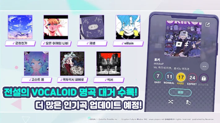 '세카이'에서는 기존의 틀을 깨면서도 익숙한 즐거움을 선사하는 리듬 게임 플레이를 만날 수 있습니다. 자유로운 형태의 노트 판정과 정교한 슬라이드, 그리고 '슬라이드업'을 통해 캐릭터의 움직임과 완벽하게 동기화되는 특별한 조작감을 경험해 보세요. 'EASY'부터 'MASTER'까지 다양한 난이도가 준비되어 있어, 리듬 게임 초보자부터 숙련자까지 모두가 자신에게 맞는 도전과 재미를 발견할 수 있습니다. 또한, VOCALOID 전당에 빛나는 명곡부터 인기 VOCALOID Producer들과 협업한 새로운 오리지널 트랙까지, 폭넓은 음악 컬렉션이 시각과 청각을 동시에 만족시키는 감각의 향연으로 당신을 초대합니다. 친구들과 함께 멀티 라이브에서 실력을 겨루며 환상의 무대를 꾸미는 즐거움도 놓치지 마세요.