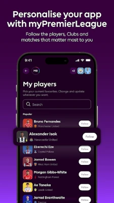 나만의 프리미어리그 경험을 myPremierLeague로 직접 만들어보세요. 좋아하는 팀과 선수, 경기를 설정하여 개인에게 최적화된 뉴스, 영상, 스토리를 받아보고, 스마트 알림으로 중요한 소식을 누구보다 빠르게 접할 수 있습니다. 어디에서든 Fantasy Premier League 팀을 완벽하게 관리하고, 실시간으로 점수를 추적하며 클래식, 드래프트, 챌린지 등 다양한 형식의 게임을 즐겨보세요. Premier League Radio를 통해 현지 해설과 분석을 실시간으로 들으며 경기의 생동감을 오감으로 느껴보세요. (일부 지역 제한 있음)